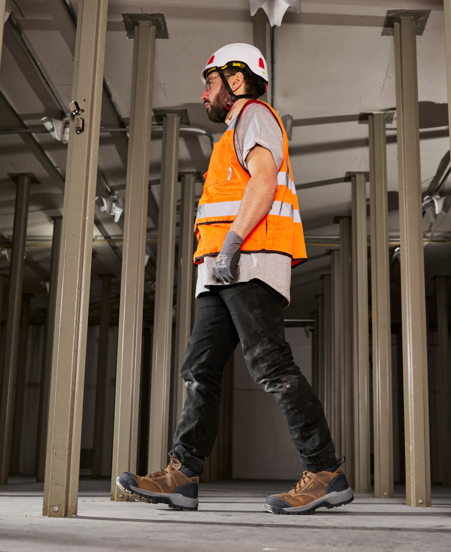 Protects like a work boot and feels like a sneaker. This versatile men’s ESD style features a tough leather upper and energy-returning cushioning.